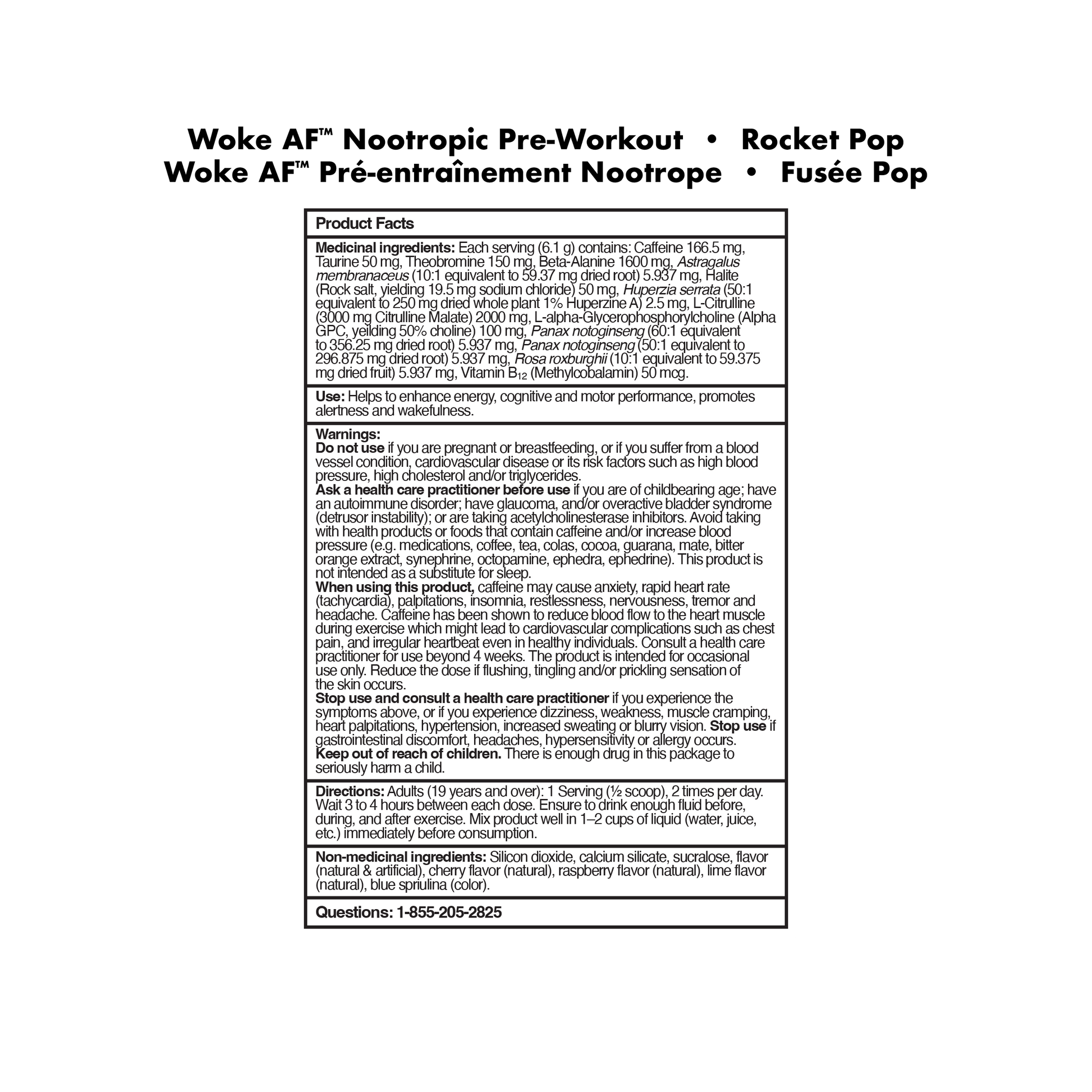 Woke AF Pre-Workout is a high-stimulant formula built for serious lifters and athletes who want maximum energy, focus, and endurance. Each serving delivers 333mg of caffeine, along with beta-alanine and powerful pump enhancers, to push your workouts past the limit. If you need extreme intensity and performance with every scoop, Woke AF delivers.
